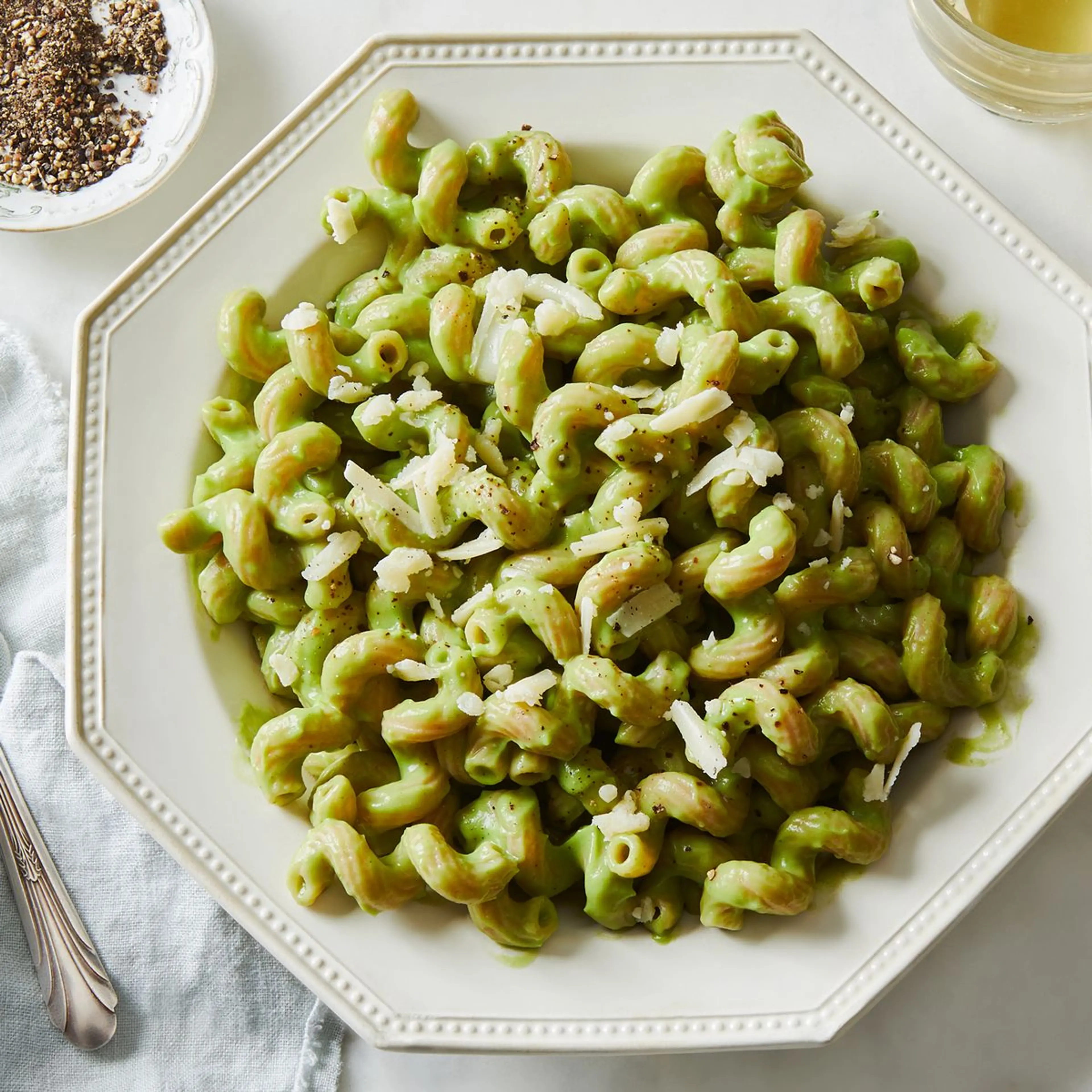 After 2 to 3 minutes, once the pasta has released some of its starch (thickening powers!), pull ⅔ cup water and add to the blender, along with the ½ cup grated cheddar. Leave the keyhole in the blender lid open, cover with a thick kitchen towel and firm grip, and blend on high speed until a super-smooth sauce forms. Give it a taste. More cheese? More salt? Add what’s needed.